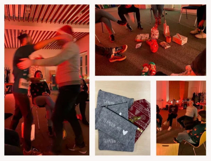 Als ersten Programmpunkt wurden verschiedene Weihnachtsspiele gespielt, darunter abgeänderte Versionen von Klassikern unserer Kurse in der Weihnachtsedition, wie: „Ich fahre Schlitten“ und „Alle, die...“. Obwohl es zuerst ein wenig chaotisch mit so einer kleinen Gruppe im Vergleich zu den sonst großen Klassen schien, stellten sich beide Spiele als den perfekten Einstieg, verbunden mit viel Lachen und Spaß heraus.